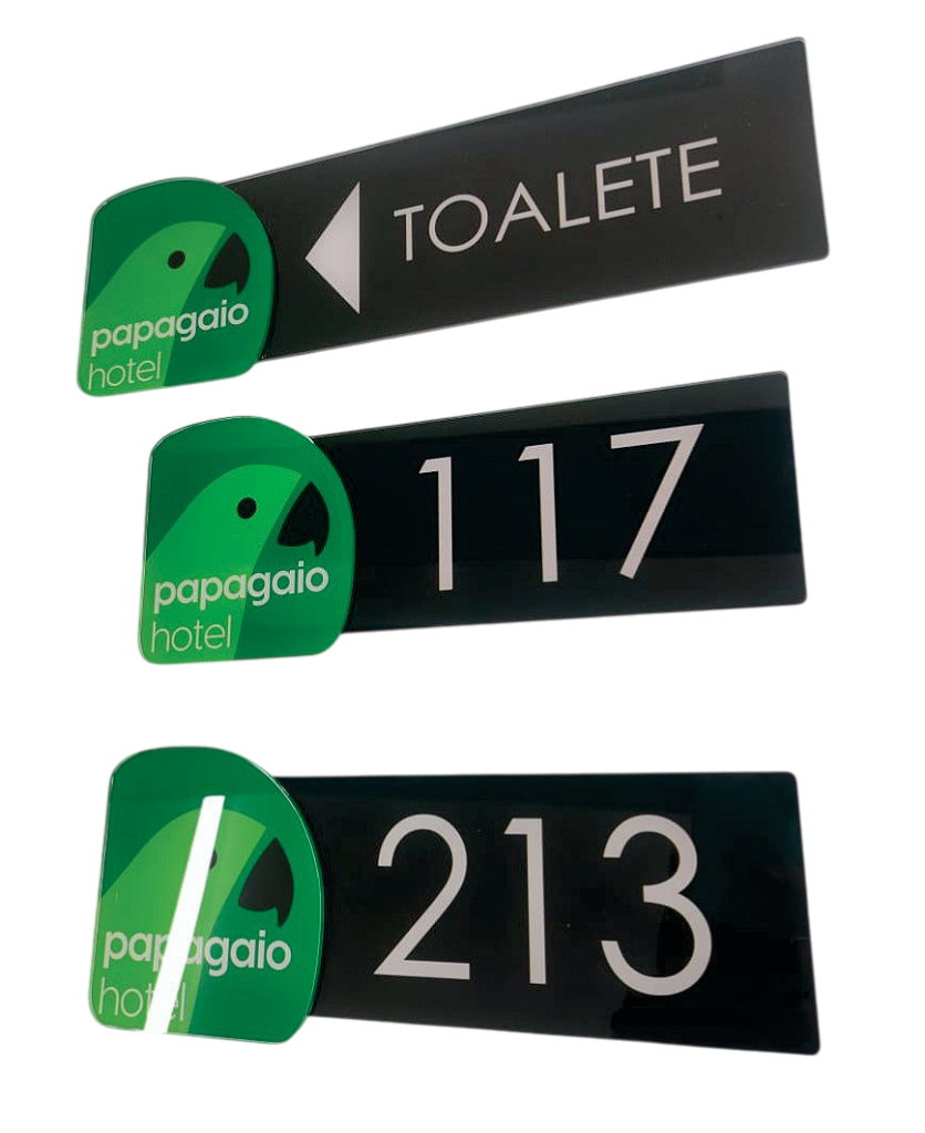 Placa de identificação de porta personalizada com sua logomarca